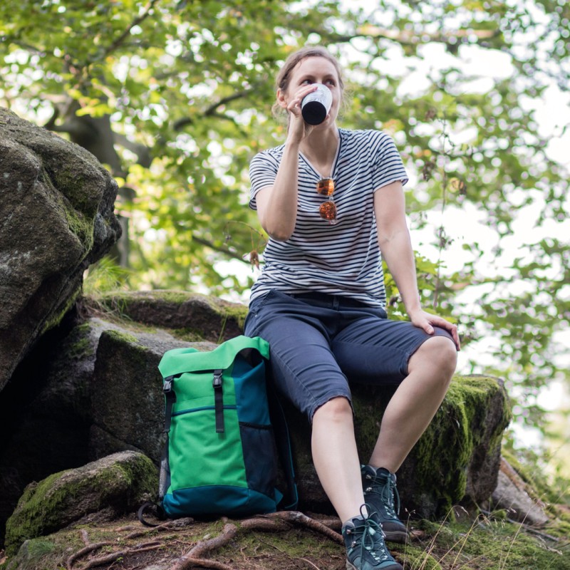 Pojemność ok. 18 litrów sprawia, że bez problemu zabierzesz ze sobą dużą butelkę wody, ciepłą odzież i prowiant. A jeśli to wciąż za mało – ściągany komin u góry pozwala na powiększenie przestrzeni bagażowej.