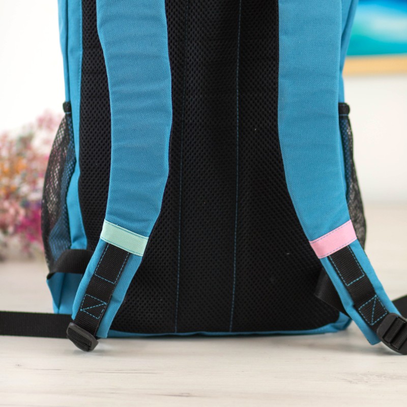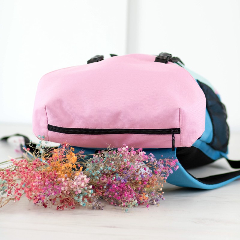 Dzięki trzem kieszeniom na zamek i dwóm bocznym z siatki łatwo zorganizujesz mniejsze akcesoria. Regulowane, wyściełane szelki oraz usztywnione plecy zwiększają komfort noszenia.
