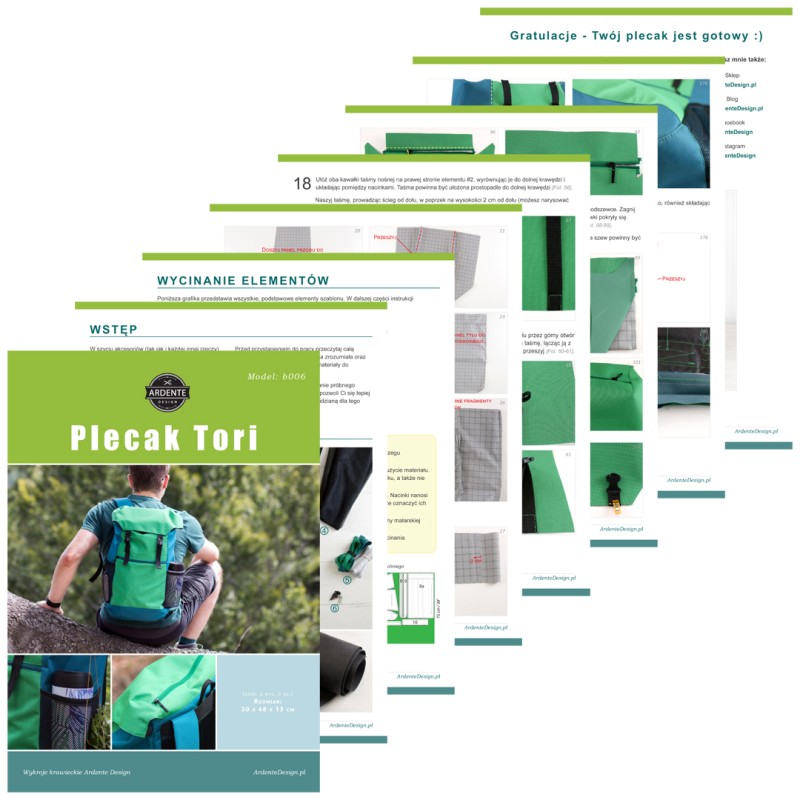 - 1 plik PDF z instrukcją szycia, 42 strony z opisami, zdjęciami i grafikami,